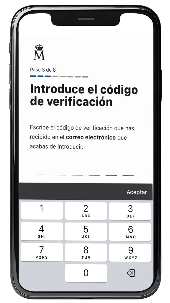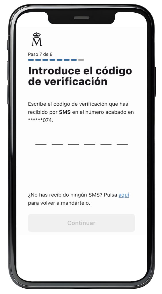 En este paso ponemos el código recibido por SMS para verificar que lo hemos recibido y queremos continuar.