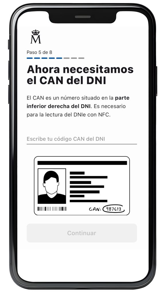 En este paso pondremos el código de seguridad de un DNI e como dice en la foto.