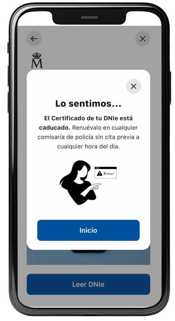 Lo más seguro el mensaje es ir a la comisaria de policía y actualizar la contraseña en la máquina para el DNI e.