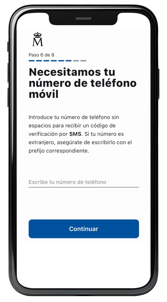En este paso escribiremos nuestro número de móvil para obtener un SMS de verificación.